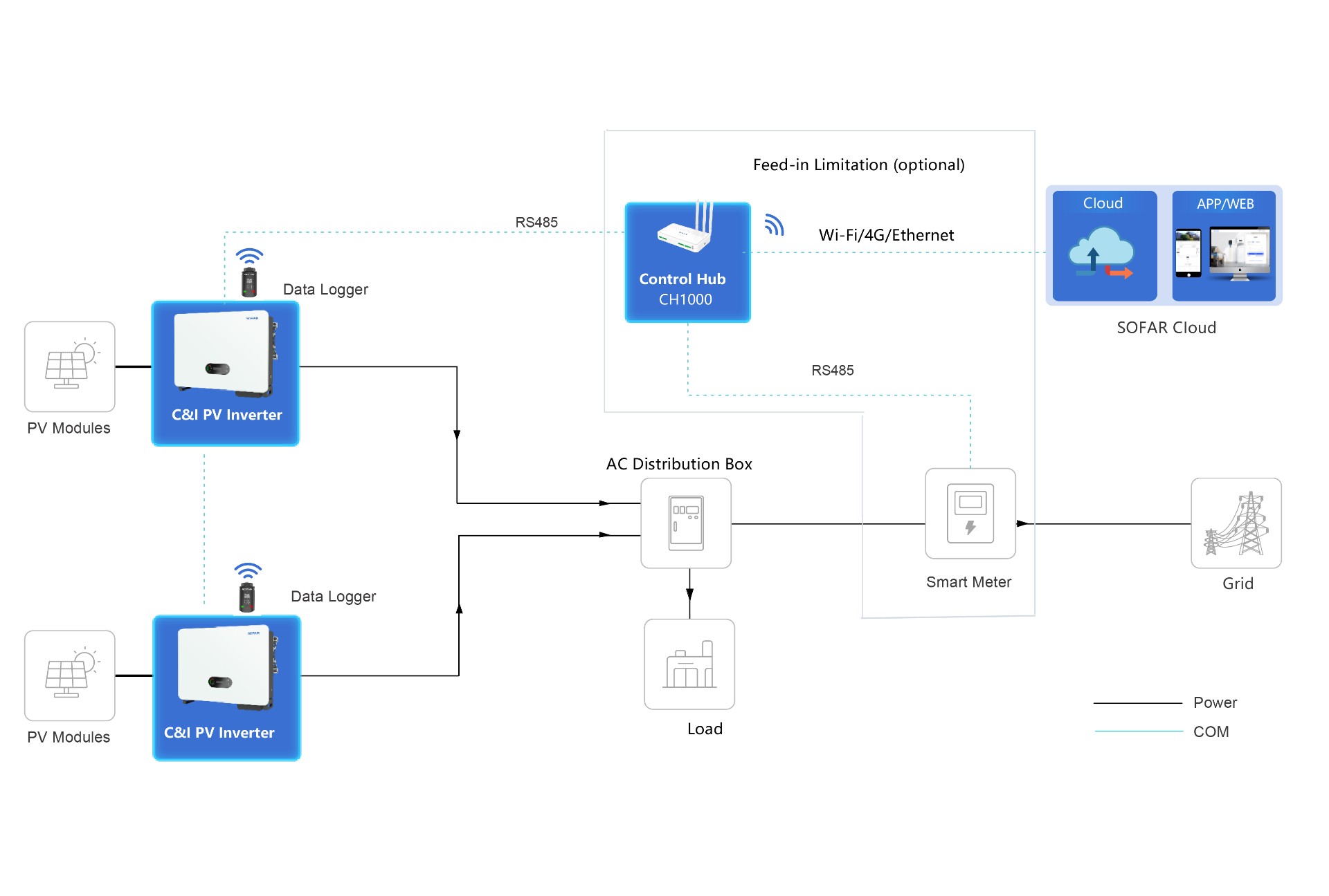 تم تحسين عاكس SOFAR 100-125KTLX-G4 لتطبيقات الطاقة الشمسية التجارية والصناعية (C&I) وكذلك لمحطات الطاقة الشمسية الصغيرة، حيث يتميز بدمج تيار فائق الارتفاع على مستوى الصناعة، وسهولة التركيب، ونظام حماية ذكي.